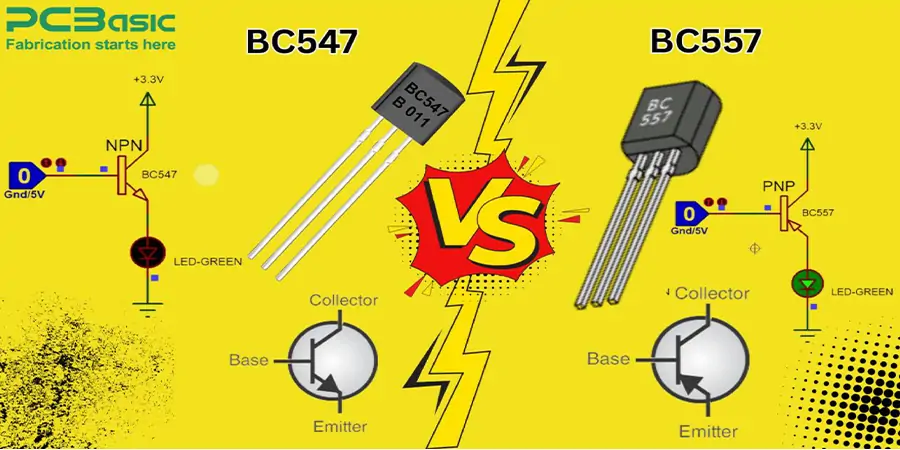 Their pinout arrangements differ significantly.BC547 uses a CBE (Collector-base-Emitter) configuration, while BC557 follows an EBC (Emitter-base-Collector) pinout. This significant difference means that the pins reverse between these models so that the circuiting becomes necessary when replacing one for the other.