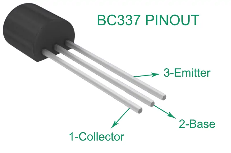 Like all other transistors, it has three pins. The pinout for the BC337 transistor looks like this: