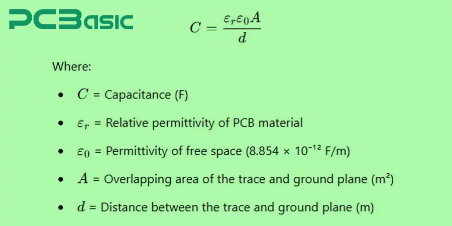 PCB trace capacitance calculator calculates the capacitance between two traces or between a trace and a ground plane. Capacitance affects signal transmission, impedance, and crosstalk and is a critical design consideration in high-frequency, high-speed PCB designs.