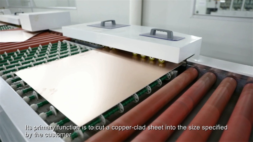 First, we begin with the ripper, where we cut a block of laminate to the specific size required for your project. Opening up the material, inner layer treatment stage: inner layer lamination, exposure development, inner layer etching, de-lamination, and more.
