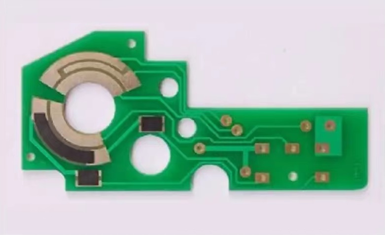 The conductive Carbon Ink PCB adopts a simple screen printing process, and one or two layers of conductive carbon ink patterns are added on a single-sided printed circuit board to realize high-density wiring. The printed conductive patterns are used as resistors, key switch contacts and electromagnetic shielding layers, etc., which adapts to the development trend of miniaturization, light weight and multifunction of electronic products.